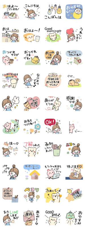 大人かわいい♡ナチュラルテイストスタンプの第3弾は、よく使う日常ことばのセットです♪ 敬語/女性/女の子/挨拶/大人ガーリー/シンプル/くま/うさぎ/おしゃれ/毎日