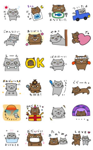佐藤家の猫、エキゾチックショートヘアのぽてまる♂とコロちゃん♀のスタンプです。目つきはわるめでも性格はやさしいです。