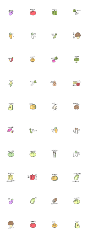 ゆるくて可愛い野菜スタンプです! いろんな場面で使えるよ♡myun より発売