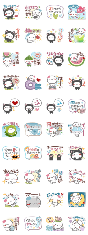 梅雨~夏にかけて活躍するスタンプです。梅雨/雨/大雨/台風/夏/暑い/でか文字/動物/猫/敬語/かわいいアルク より発売