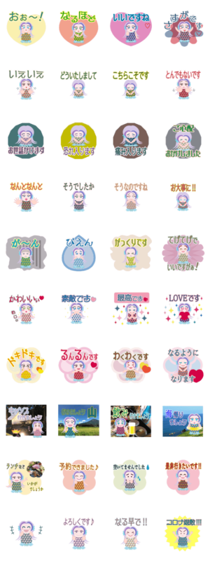 いろいろなリアクションと、ちょっとしたお誘いに使えるスタンプをデカ文字でご用意しました。アマビエは、江戸時代後期に肥後の国に現れたといわれる疫病除けの妖怪です。