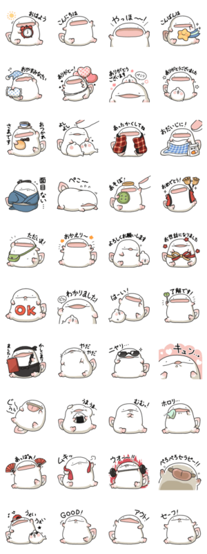 SNSにて更新中!手乗りサイズのオオサンショウウオの日常を描く『オオサンショウウオのまんが』のスタンプ、第2弾です。モコ より発売
