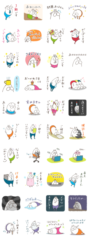 お仕事をテーマに使いやすい言葉を集めたスタンプです。時にはシャキッと、時にはゆるーく働くお仕事モードのねこタイツと一緒にトークを楽しみましょう。くらきち より発売
