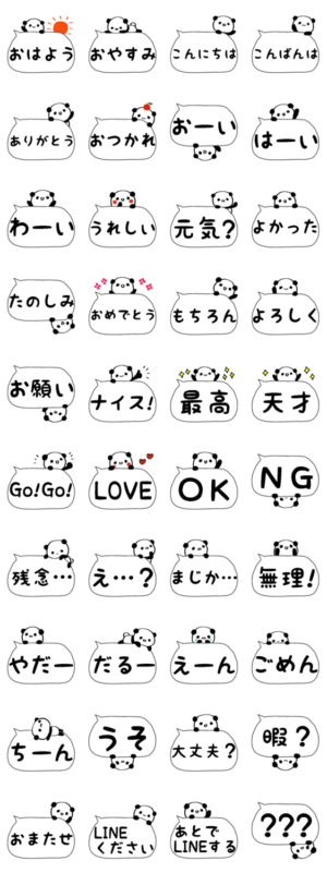 パンダのふきだしスタンプ/でか文字日常編 スタンプ画像一覧