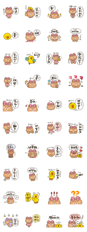 かわいいチョコ&サリーの毎日使える韓国語のスタンプ♡ハングルだけじゃなく、ルビ・訳付だから誰でも使えて誰にでも送れる大人かわいいのスタンプです♡ ※BROWN & FRIENDS をみんなでつくろう!キャンペーン参加スタンプですmaruimo より発売