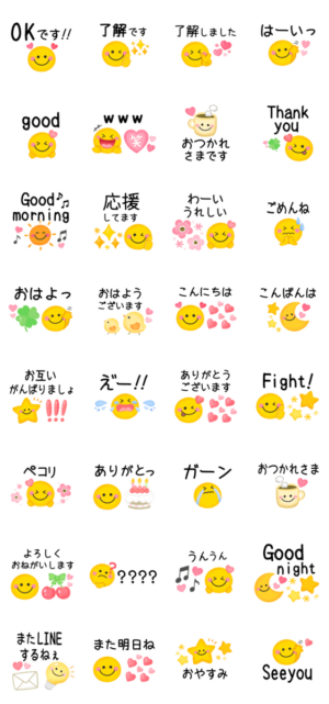 ニコちゃんのいろんな表情とよく使う無難な日常言葉のセットです♪ かわいい/家族/カップル/大人可愛い/ガーリー/敬語デカ文字ちゃぴ より発売
