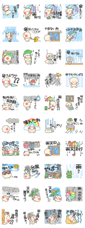 まるあたまのデカ文字梅雨スタンプ スタンプ画像一覧