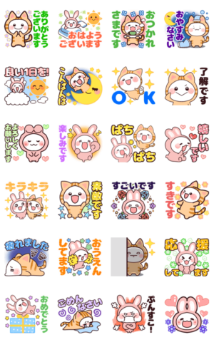 ネコとウサギの動物着ぐるみ♥日常生活でよく使えるスタンプ♥大人のやさしい気持ちを伝えます