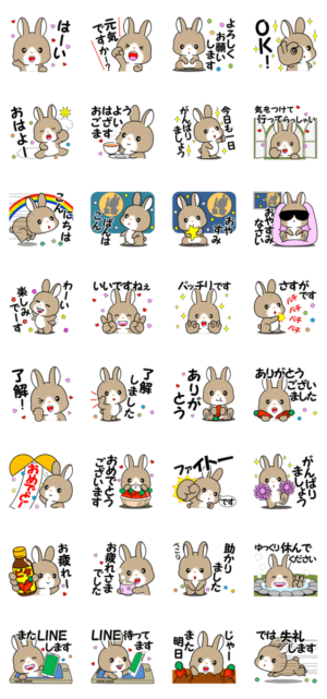 元気なウサウサの日常挨拶スタンプセットです。敬語も豊富です。ヒサケイプリン より発売
