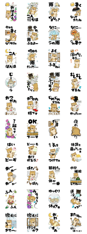茶色い犬のちゃちゃ丸の梅雨から初夏に使えそうなスタンプです。。(柴犬、〇〇犬・・・日本犬のつもりです...)