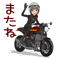 ネイキッドバイクに乗る女性のスタンプ。ツーリング好きのバイク乗り。女性ライダー。オートバイ女子部。アニメーションスタンプ。動くスタンプ。