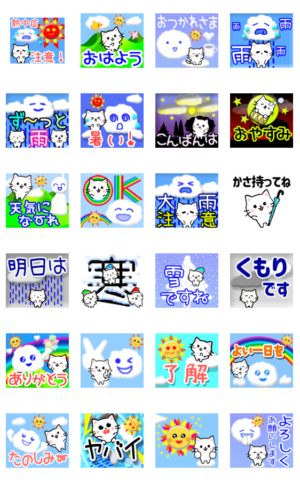 ピョンねこ毎日のお天気☆日常語☆飛び出す スタンプ画像一覧