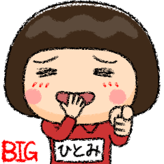 ひとみ(ヒトミ)が使う芋ジャージの名前スタンプ『絵本編』。クレヨンやパステルで描いたようなタッチのBigスタンプです。