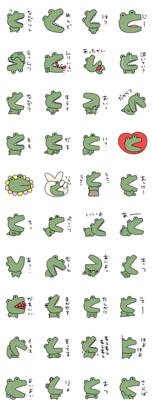 シュールなミニわにの反抗期スタンプです。eribo より発売