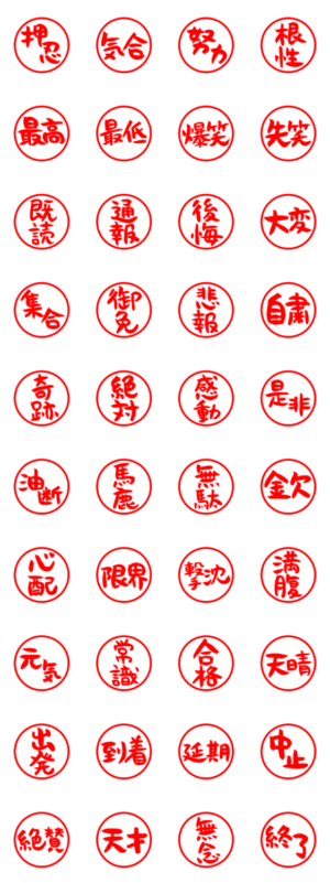 毎日使える2文字熟語の筆文字はんこ スタンプ画像一覧