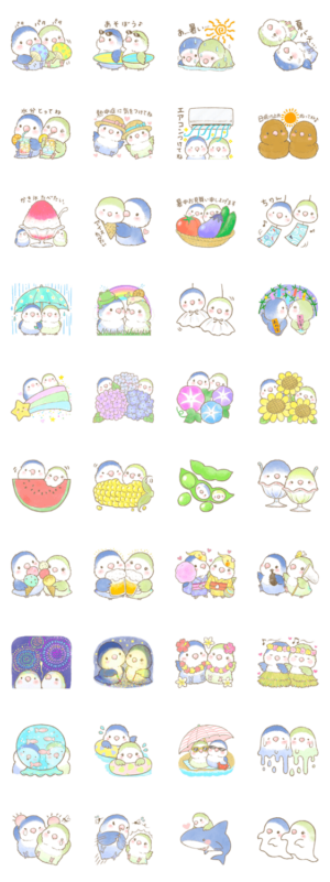 コザクラインコのあおちゃんとあもちゃん夏 スタンプ画像一覧