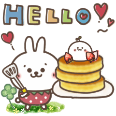 お人好しなうさぎのスタンプです♪ 毎日使える便利な言葉とリアクションがセットになった使いやすいスタンプです。苺の洋服バージョンです。/ウサギ/うさぎまるまる より発売