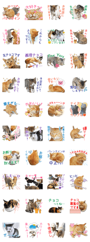 個性的で可愛い野良猫写真スタンプ第二弾です。 今回はバレンタインデーバージョン!人を選ばず送ることができて使いやすい♪猫たちと一緒に愛を語ろう♪