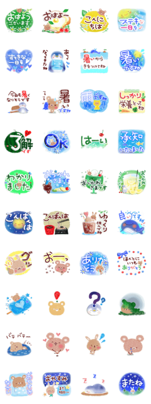 可愛い夏スタンプ!清涼感もあって癒されるような優しいイラストが魅力的です!
