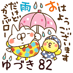 ゆづき/ユヅキ専用82/ねことうさぎの名前スタンプ/天気/動く版/雨/猛暑/台風/ゲリラ豪雨/梅雨/雷/暑い/台風/地震/じめじめ/夏/雪/猫/動く/冬/山田まぽん作。山田まぽん 新 名前スタンプ より発売