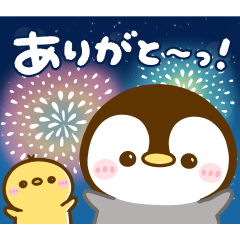 ペンギンとひよこちゃんの夏を感じるスタンプ。かわいらしくもキラキラしすぎではない、絵柄から用途が分かりやすいなど全体的にLINEスタンプとして優秀。極めて実用的。