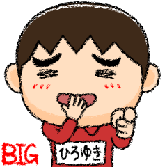 ひろゆき(ヒロユキ)が使う芋ジャージの名前スタンプ『絵本編』。クレヨンやパステルで描いたようなタッチのBigスタンプです。