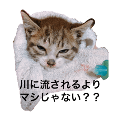 2021年7月7日、農業用水路に落下し我が家に流れ着いた川流れ猫のスタンプです。天の川を眺めず川に流されて一生分の不幸を身に受けたお前をForever幸せにしたい。