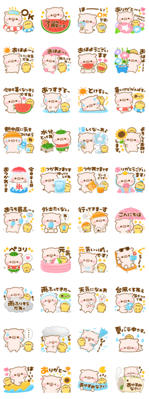ほのぼのブタさんの夏用スタンプで癒されるし、夏中たっぷり使えそうです。