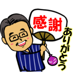 中高年シリーズ。今回は夏に使えるスタンプ。見やすいデカ文字挨拶付き。梅雨、七夕、祭り、浴衣、おじさん、おじいさん、男性、めがね、眼鏡、爺、季節、イベント、行事