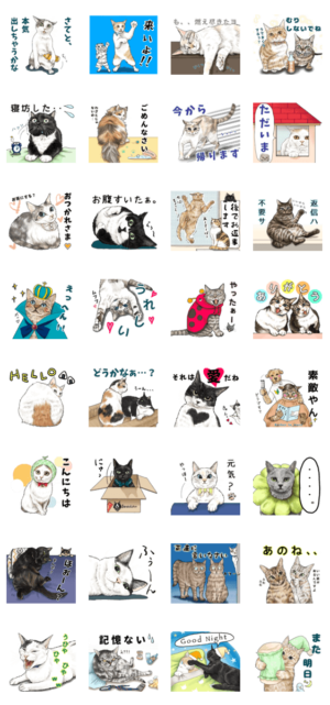 猫好きのための、猫にまみれたスタンプ第2弾です。普段使いやすい言葉多めです。nekomangakakuyo より発売