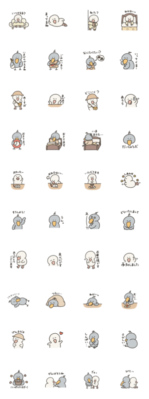 フラミンゴの赤ちゃんアルちゃんとハシビロコウの赤ちゃんグレくんのスタンプ第2弾です。日常生活のいろんな場面で使える、とても便利なスタンプです!arugure より発売