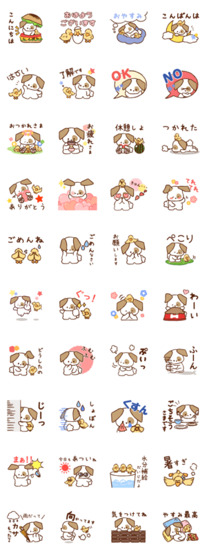 毎日使える♪ゆる可愛い子犬のプーチとあひるのダギーのスタンプです☆これからの暑い季節にも◎