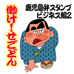 鹿児島弁の日常会話用スタンプ第6弾、ビジネス版第2弾ごわんど。せごどん(西郷さん)がおはんらのビジネス会話を盛り上げもす。今度も、仕事に役立てったもんせ。