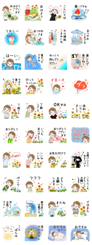 いよいよ夏ですね。暑い毎日を元気に過ごせる使いやすいスタンプです。taemama より発売
