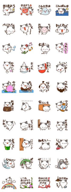 『ちびブチ』の【絵文字】と【着せかえ】もあります。ぶちネコの、毎日使いやすい、便利なかわいい猫スタンプです。ちいさいねこ好きな方にぜひ。【かたこ】かたこ より発売