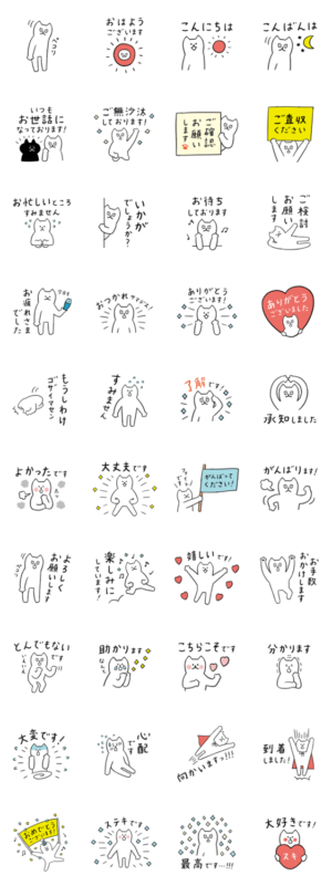 仕事でも使えるしろねこトーフの敬語スタンプです。 基本の挨拶も含めた使いやすいセットです。kannoaya より発売