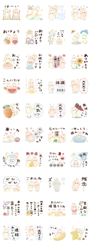 もふもふうさぎの毎日使いやすいスタンプです♡あいさつ・七夕・夏・暑中見舞い・残暑見舞い・天気・熱中症chatoran より発売