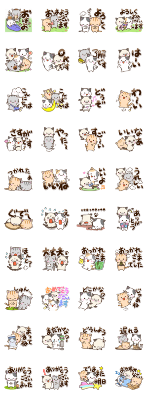 にぎやかで、元気な、『おちゃめなネコたち』のスタンプです。明るく楽しく返信するのに便利な、ずっと使える猫スタンプです。かわいい、ねこ好きな方にぜひ。【かたこ】