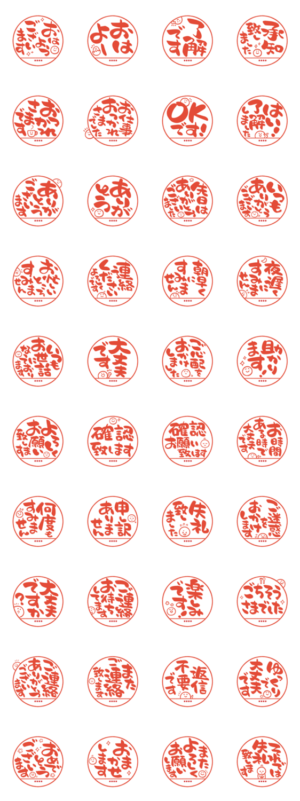 名前を入れられるシンプル筆文字ハンコスタンプです。敬語多め、可愛すぎない、大人なスタンプ。上司、目上、先輩にも使いやすい