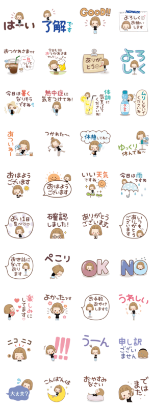前髪短めな女の子の大人可愛い♡「でか文字スタンプ」です。