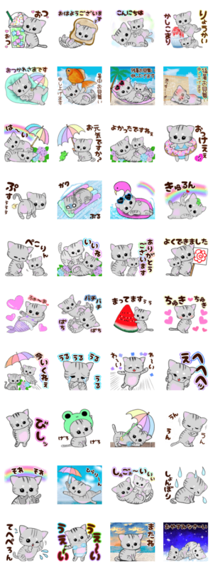 ❤️可愛いアメショー親子猫❤️夏のあいさつ スタンプ画像一覧