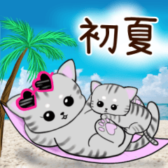 かわいいグレーのアメリカンショートヘアーの母子&姉妹/初夏/梅雨に毎日使えます❤️大人も使いやすい夏の敬語挨拶多めです。