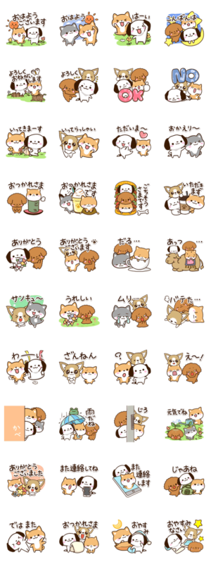 可愛いワンちゃん大集合の素敵なスタンプです。種類も豊富で使いやすいですね。