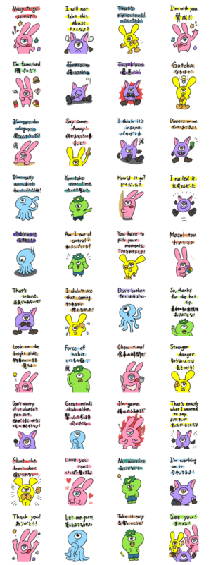 ひとつめモンスターズの英語と日本語のBIGスタンプが登場!英語の勉強や、外国人の友達とのLINEのやりとりなどに使ってみてね!