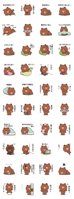 ちびブラウンのいまいちやる気のない時に使うスタンプです。 ※BROWN & FRIENDS をみんなでつくろう!キャンペーン参加スタンプですパン より発売