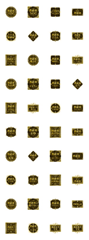 東京西麻布のセレブ、キャバ嬢、水商売、ホスト、ホステス、クラブ、港区女子専用の高級キラキラスタンプです。西麻布での日常会話を面白く、チャラくパリピにサポート!