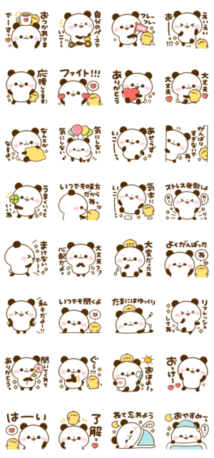 応援・励まし・共感したり色々な気持ちを届けるパンダのスタンプです。ぴよたぬき♡ より発売