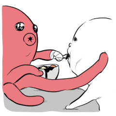 少女漫画のようにキラキラした目の、タコの宇宙人のキャラクターが印象的。全体的にちょっと使い所の難しいスタンプが多い。しかし絵柄は独特で、うまく使ってやればちゃんと刺さりそう。
