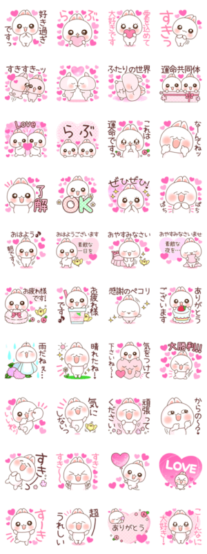 LOVEいっぱいな可愛いうさぎのラブラブスタンプ♡恋人(カップル)・友達・家族に愛を伝えよう♡挨拶や日常生活などいろんなシチュエーションに。
