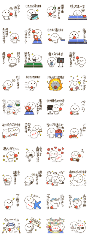 卓球,ピンポン好きの毎日に便利な連絡スタンプ☆母,父,子,家族,友達,会社,部活,サークル,クラブ,チーム,先輩,後輩の皆で使いやすいを揃えましたでござる。ラブ卓球ライフ!!